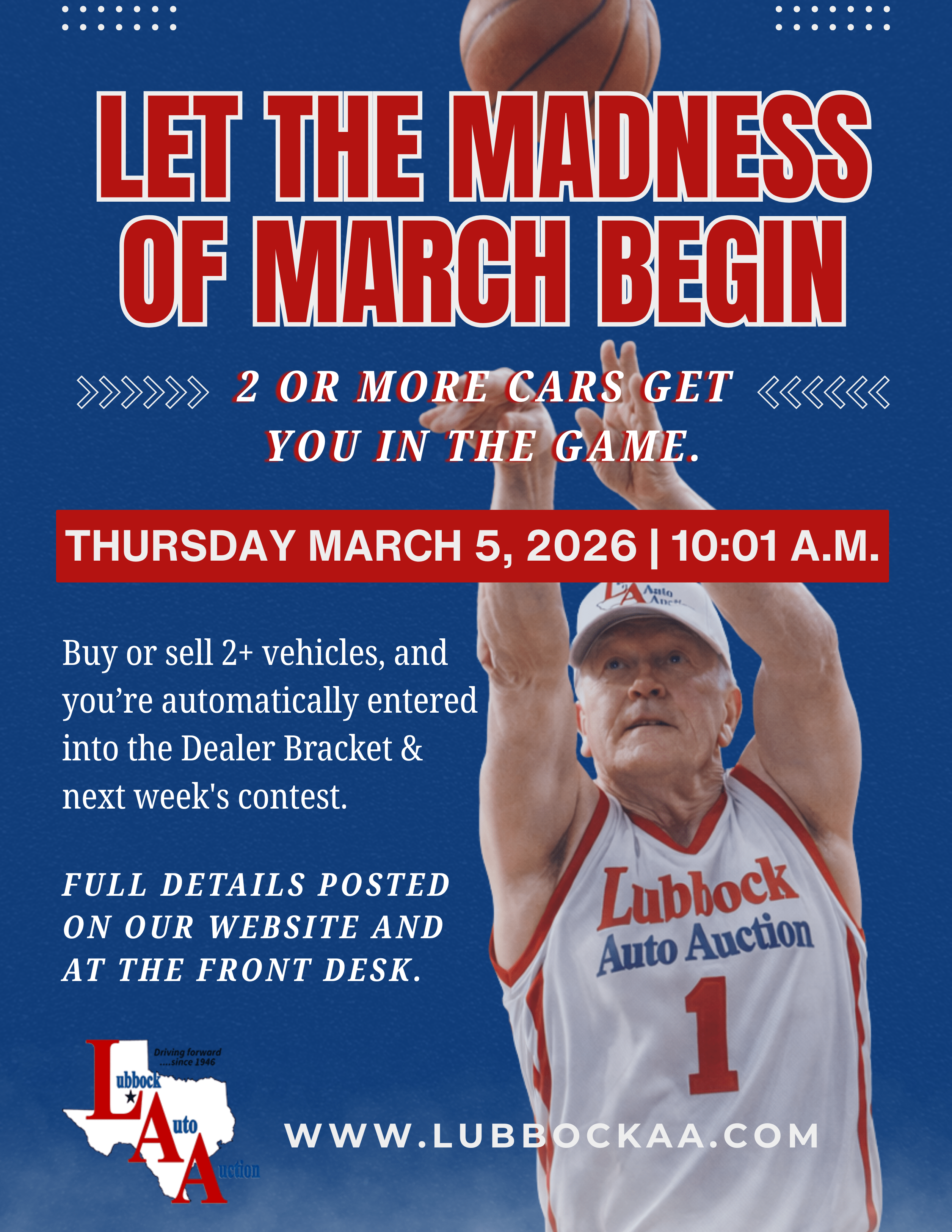 Lubbock Auto Auction is the premier dealers-only auto auction serving Lubbock and the South Plains since 1946. We are proud to offer personalized service in a professional, modern environment for both buyer and seller to profit.